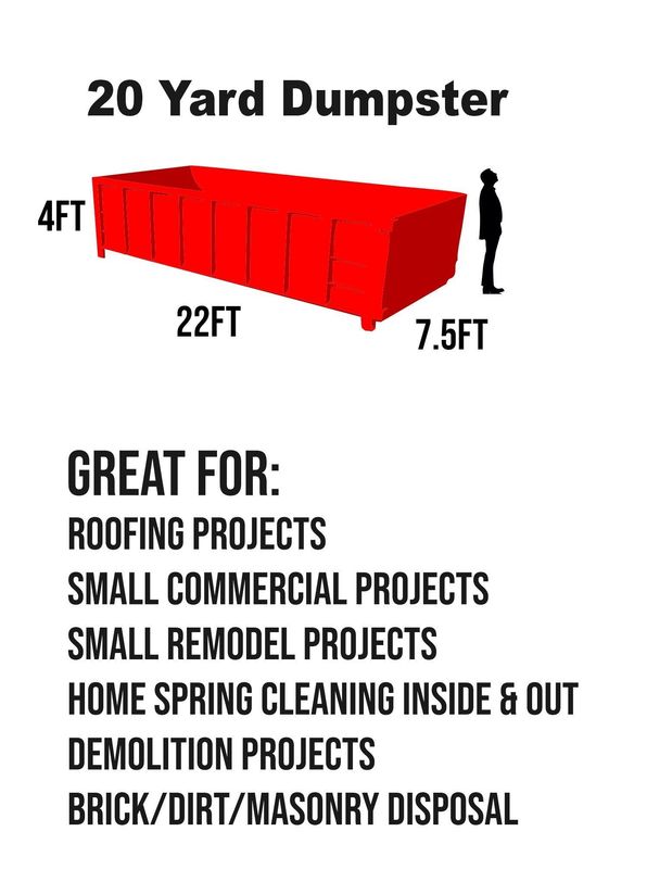Only 20-yard containers may be used for concrete and dirt, and they must not exceed ¾ full.